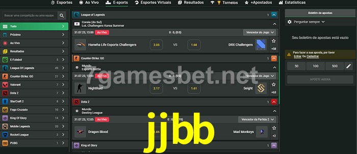 O jjbb oferece uma grande seleção de opções de apostas em e-sports com probabilidades competitivas